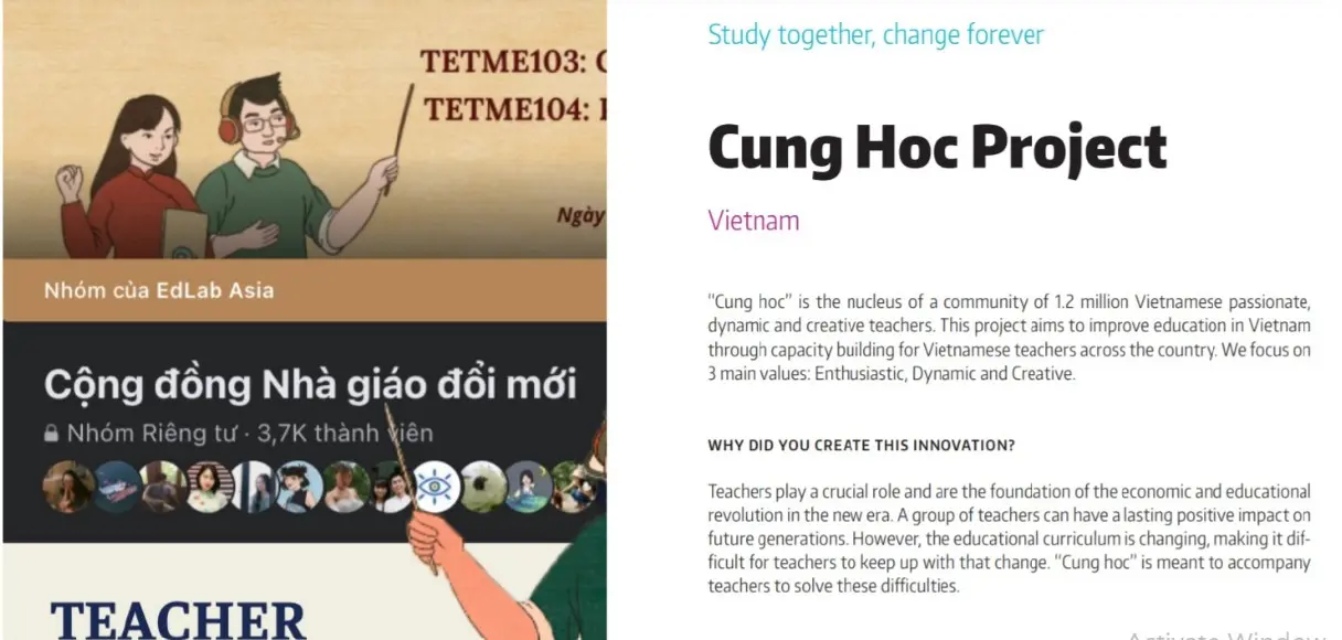 Teaching and Learning Literacy for Educators is Vietnam's pioneering MOOCs platform that serves 40,000+ educators nationwide through 35 free online micro-learning courses across three core pillars: "How to learn," "How to teach," and "How to design." Also, the project offers 45 issues of “Teaching and Learning Magazine.” The platform tackles the limited English proficiency and restricted learning access of teachers. Teachers develop autonomous learning habits while immediately implementing new knowledge in their classrooms. The platform eliminates traditional time, geography, and finances barriers, systematically transforming Vietnamese educators into confident lifelong learners for sustainable educational improvement.