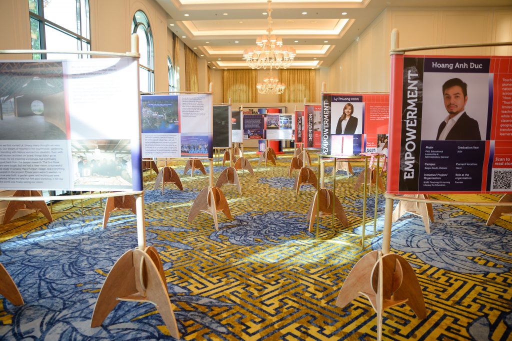The wooden exhibition frame concept is the result of hard work from our alumna Nguyen Huyen Chau, founder and CEO of VAN•HOA. NK Production, founded and led by alumnus Nguyen Minh Nhut, has made a significant contribution to our event production. Lilou Studio, our fragrance sponsor, has our alumna Buu Ngoc Minh Anh as the partnership manager. We extend our sincere appreciation to all participating alumni who generously shared their inspiring stories. Without the enthusiastic support of the alumni community, this project would never have taken place.